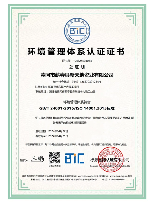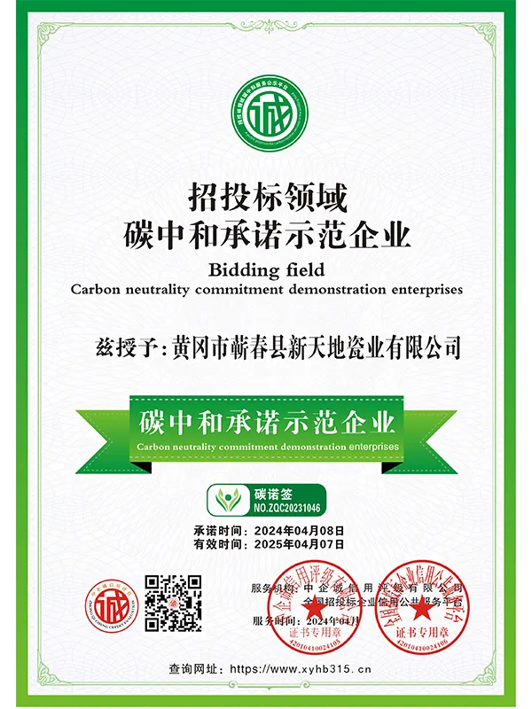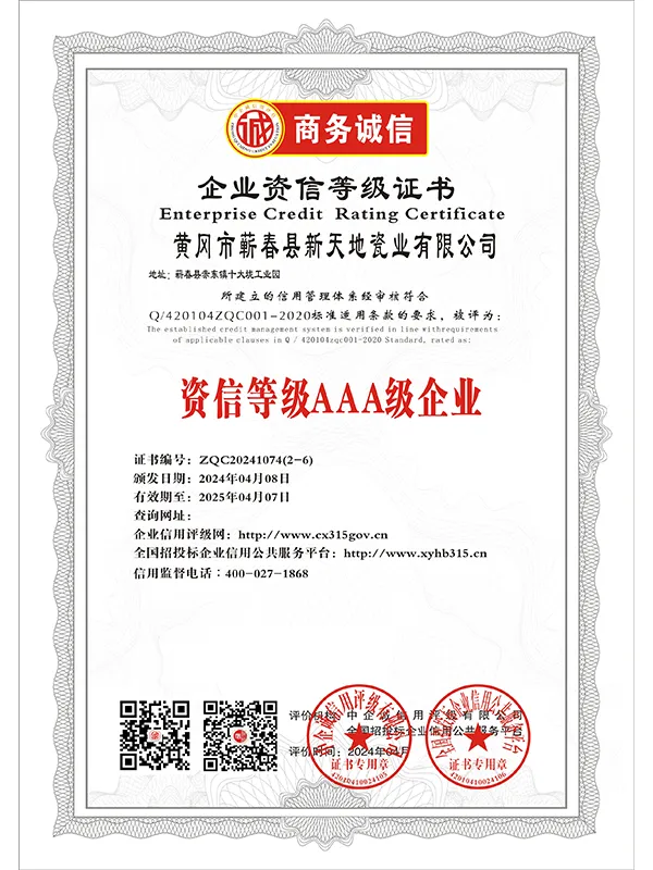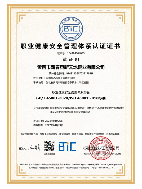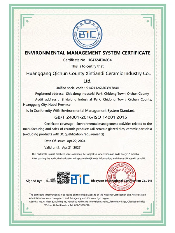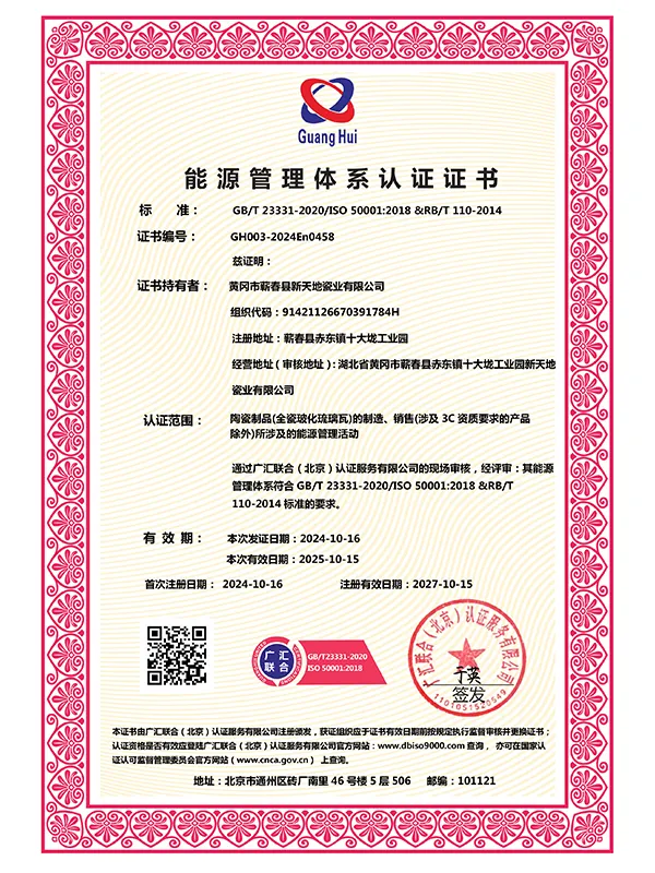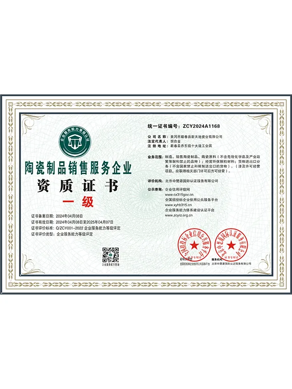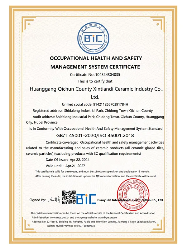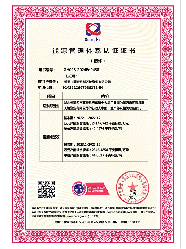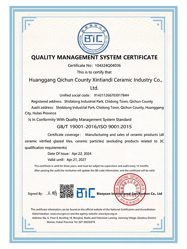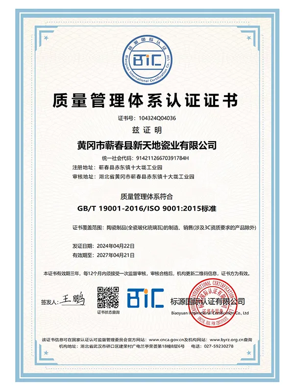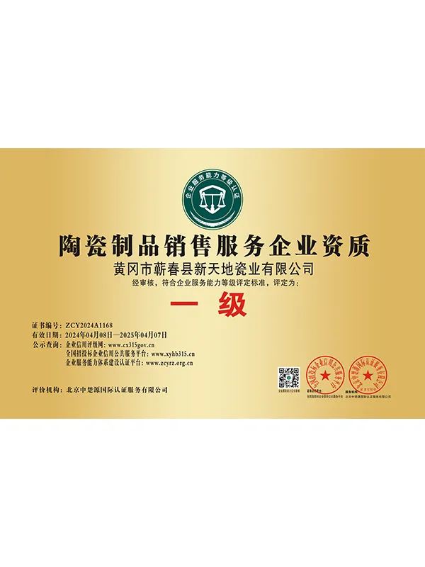 В марте 2021 года компания успешно прошла сертификацию по трём системам международного стандарта ISO. В сентябре 2021 года Синьтяньди Керамика была признана единственным обладателем «Премии качества имени Шичжэнь».